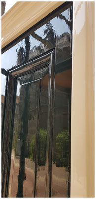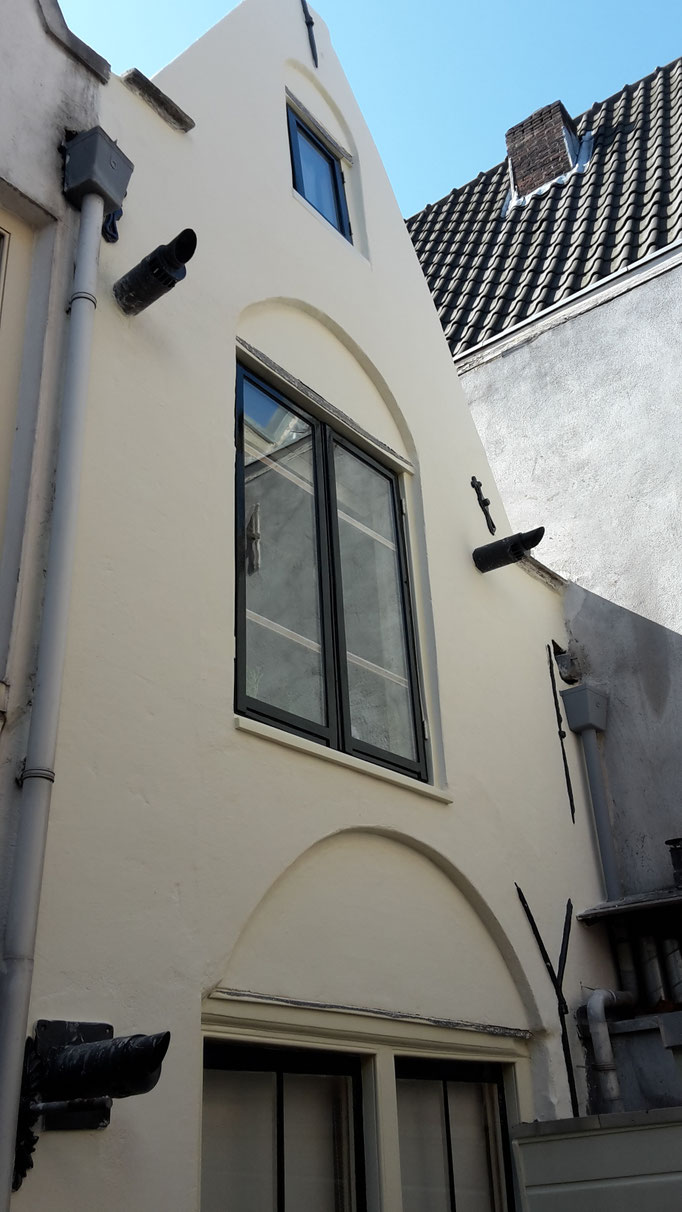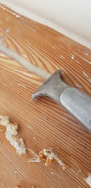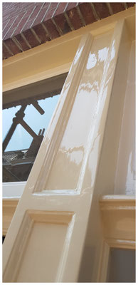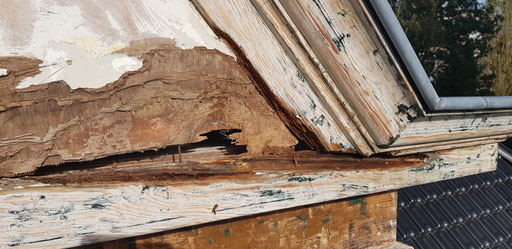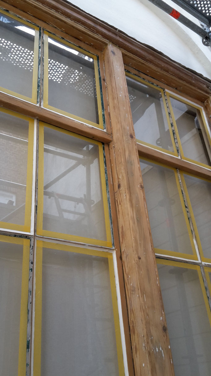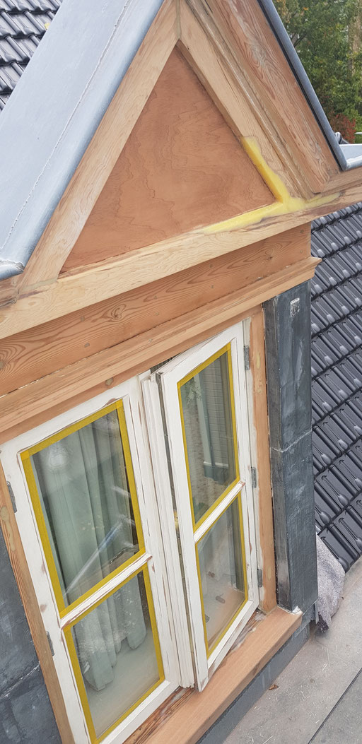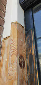 Oude reparaties en eventuele houtrot worden nauwkeurig verwijderd, deels vervangen of gerepareerd met een 2 componenten reparatiesysteem op basis van